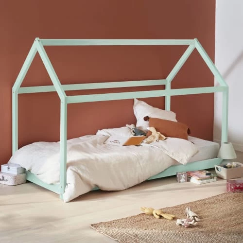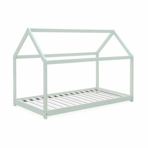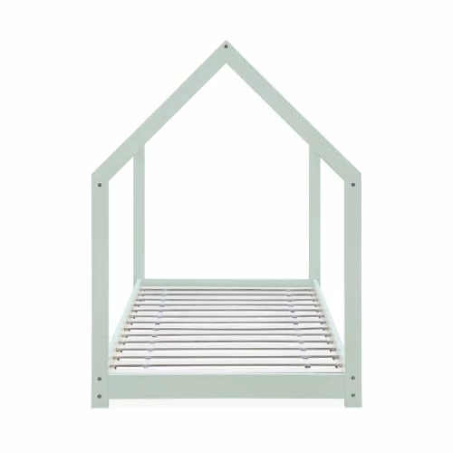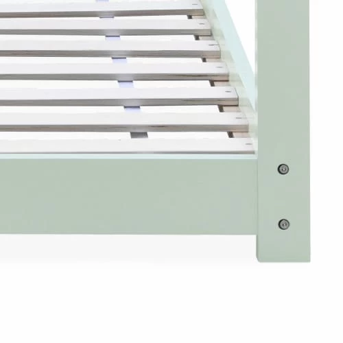 Ce lit cabane sera apprécié par les enfants et par leurs parents. Adapté aux plus petits, il deviendra vite un vrai petit cocon pour votre chérubin. Conçu en bois de pin couleur vert céladon, il a un style épuré qui rappelle le design scandinave et se fond dans n’importe quelle chambre. Le sommier à lattes est inclus avec le lit.