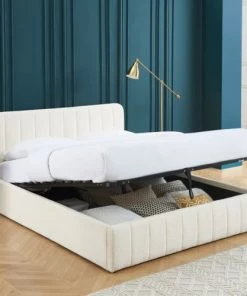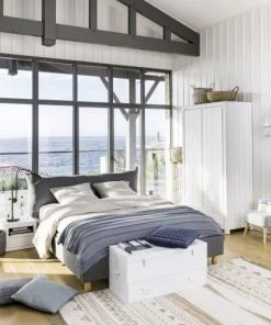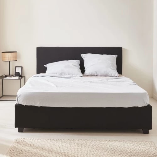 Son détail malin ? Un coffre de rangement se cache sous le sommier, très pratique pour stocker votre linge de maison ou des vêtements qui ne sont plus de saison. L’ouverture est possible à l’aide d’un système de vérins hydrauliques qui vous permet d’ouvrir et de fermer le coffre en toute sécurité. Avec ses lignes élégantes, ce lit trouvera facilement sa place dans une chambre parentale, une chambre d’ado ou d’amis.