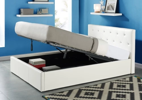 On aime également son coté pratique grâce à son coffre de rangement situé sous son sommier à lattes 140×190.