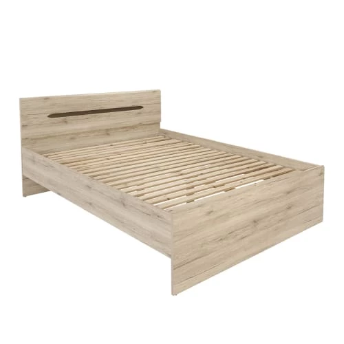 Lit 160×200 Rico Bois Fabrication Européenne – Collection: RICO – Matériaux: Panneaux agglomérés – Couleur: Bois façon chêne clair San Remo – Détail en bois façon Wenge – Caractéristiques: Poids maximum conseillé : 200 kg – Compatible avec un sommier à cadre ou à fagot – Sommier – Non inclus – Matelas – Non inclus – Poids et Dimensions : 50 kg- 165 x 203 x 43 – 90 cm – Produit livré, à monter – Produit garanti 12 Mois.