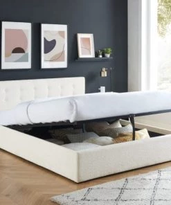 Lit coffre 90×200 sommier inclus Edwin Blanc Fabrication Européenne – Collection : Edwin – Couleur : Blanc laqué – Matériaux : Panneaux MDF et de particules – Sommier avec cadre en métal et latte en bois – Caractéristiques : Sommier coffre inclus – Verin à gaz avec amortisseur – 1 grand coffre de rangement divisé en 2 compartiments – Poids maximum conseillé : 100 kg – Matelas non inclus – Poids et dimensions : 80 kg – 99 x 204 x 40 – 95 cm – Produit livré, à monter – Produit garanti 12 Mois.