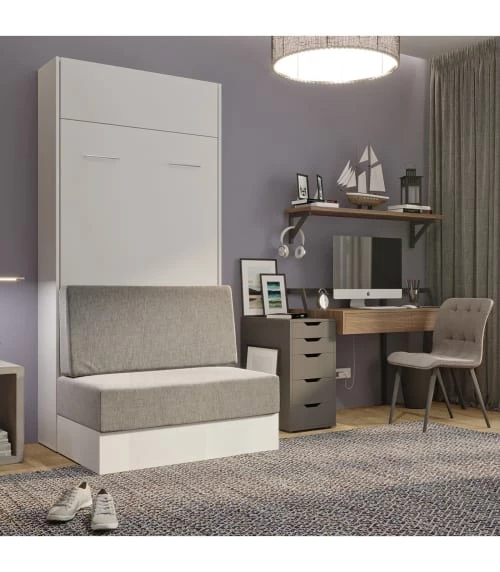 Calicosy Lits Lit Escamotable Blanc Et Sofa Sans Accoudoirs – 1 Place – 90X200