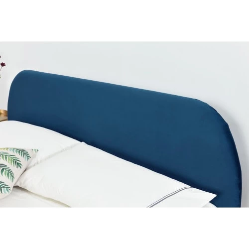Ajoutez du style à votre chambre avec ce lit Queen size en velours bleu ! Ses pieds couleur laiton lui donne un coté rétro-industriel qui vous permettra de l’assortir à votre décoration. Ses jolies formes arrondies lui donnent un certain charme.