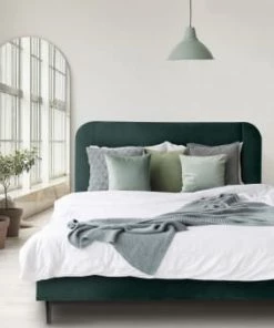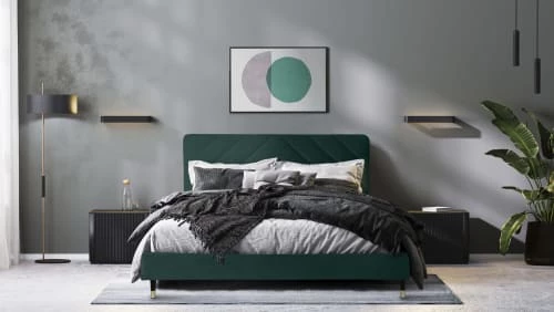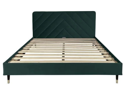 Entièrement conçu en bois, BRIANNA possède un sommier en lattes de peuplier, ainsi que des pieds en hêtre massif laqués noirs, à la fois chics et sobres. Pour finir, BRIANNA est disponible en 3 coloris : vieux rose, pour une touche de légèreté, bleu nuit, pour une chambre de caractère, et vert bouteille, aspirant à la détente.