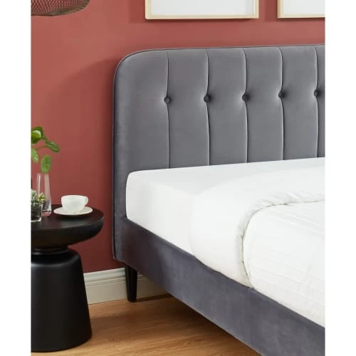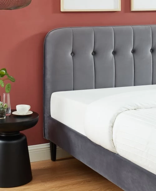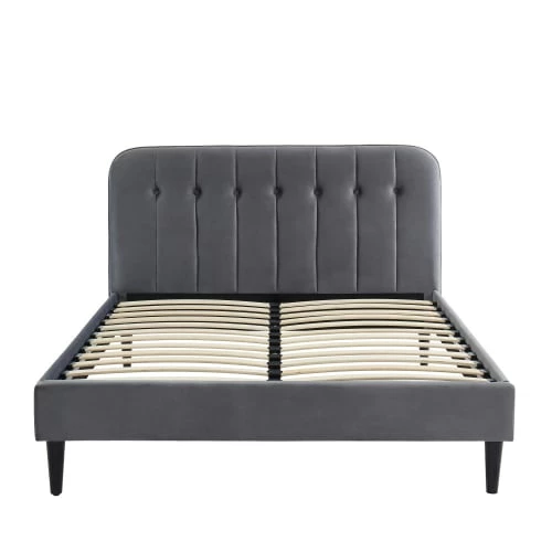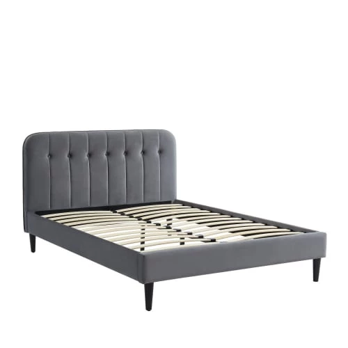Maisons Du Monde Lits Lit Vintage 160×200 Avec Sommier à Lattes En Velours Bleu Nuit, OEKO-TEX®
