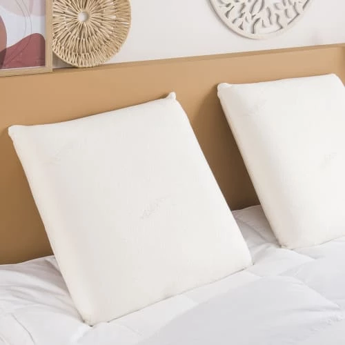 Composition du tissu : Face extérieure 100% viscose / Face intérieure et garnissage 100% polyester – Composition du garnissage : Bloc de mousse à mémoire de forme enrichie en huile végétale