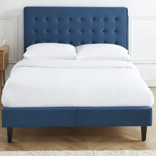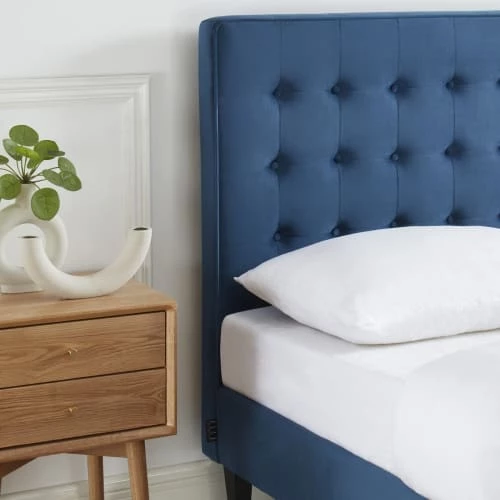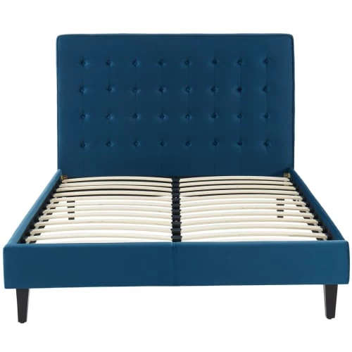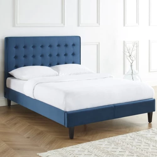 Maisons Du Monde Lits Lit Vintage 160×200 Avec Sommier à Lattes En Velours Bleu Nuit, OEKO-TEX®