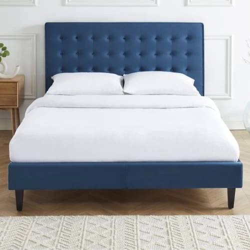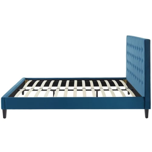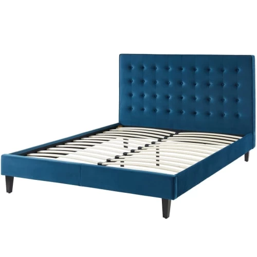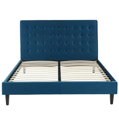 Maisons Du Monde Lits Lit Vintage 160×200 Avec Sommier à Lattes En Velours Bleu Nuit, OEKO-TEX®