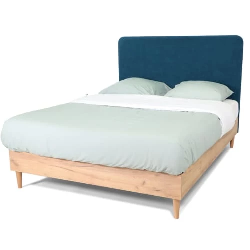 Maisons Du Monde Lits Lit Vintage 160×200 Avec Sommier à Lattes En Velours Bleu Nuit, OEKO-TEX®