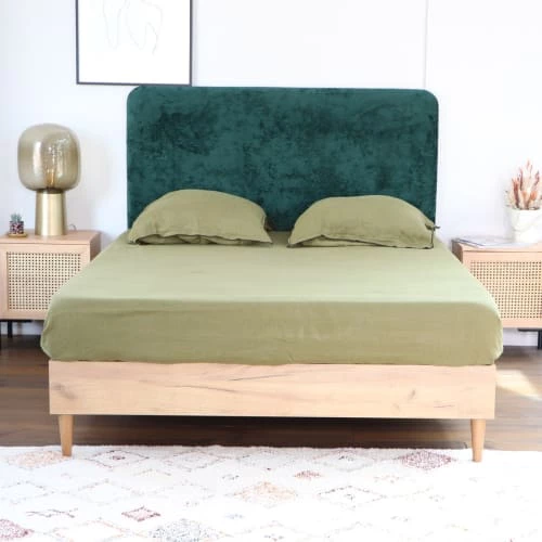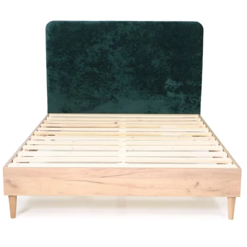 Maisons Du Monde Lits Lit Vintage 160×200 Avec Sommier à Lattes En Velours Bleu Nuit, OEKO-TEX®
