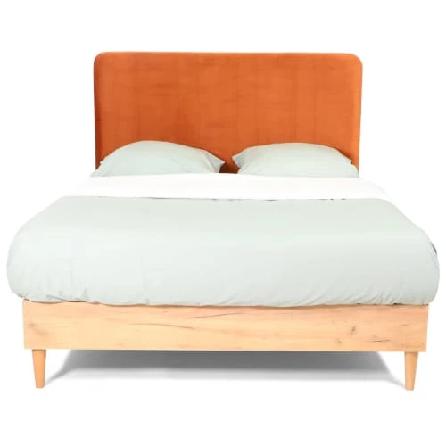 Maisons Du Monde Lits Lit Vintage 160×200 Avec Sommier à Lattes En Velours Bleu Nuit, OEKO-TEX®
