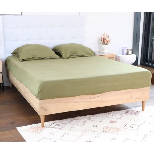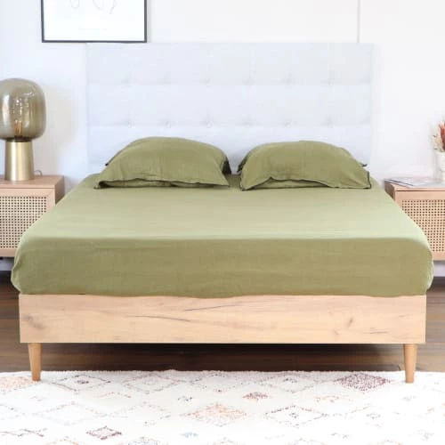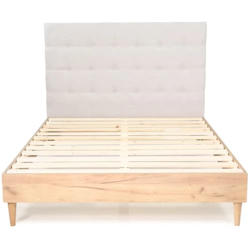 matière : tête de lit : Sapin Massif – Tissu: 100% Polyester / Sommier : Panneau de particules mélaminés & Lattes bois massif