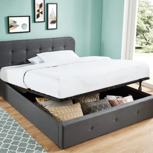 Talamo Italia Lits Lit Coffre Cm 160x190 En Tissu Marron