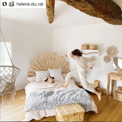 Le rotin, fibre naturelle issue de la famille des palmiers d’Asie ne cesse de se renouveler dans la décoration, notre tête de lit en rotin DALIA est le parfait exemple, elle assume sa singularité avec ses motifs en forme de fleur pour apparaître nettement plus contemporaine et design.