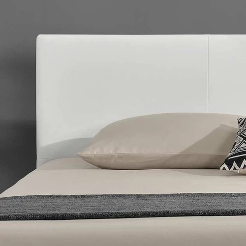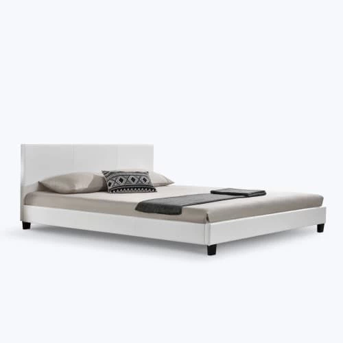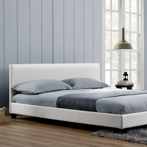 matière : Structure du lit : 24 lattes en peuplier, revêtement : simili blanc
