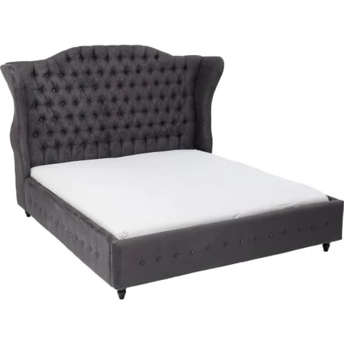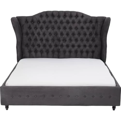 Maisons Du Monde Lits Lit Vintage 160×200 Avec Sommier à Lattes En Velours Bleu Nuit, OEKO-TEX®