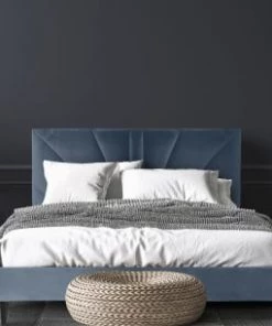 DIVA SALON Lits Good Is Beautiful Lit Avec Sommier 2 Places En Velours Bleu Gris