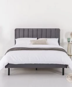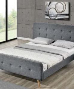 DIVA SALON Lits Lit Avec Sommier 2 Places En Tissu Kaki