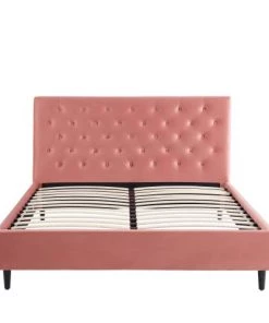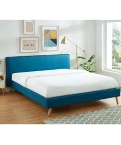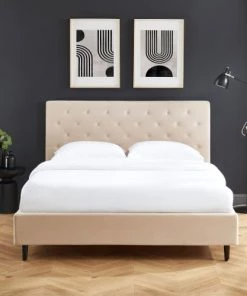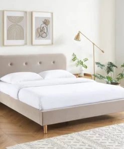 DIVA SALON Lits Lit Avec Sommier 2 Places En Tissu Kaki