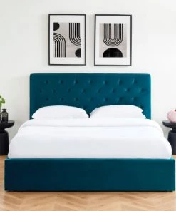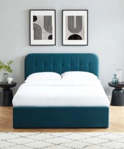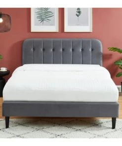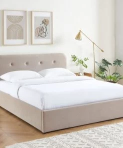 DIVA SALON Lits Lit Avec Sommier 2 Places En Tissu Kaki
