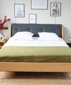 DIVA SALON Lits Lit Avec Sommier 2 Places En Tissu Kaki