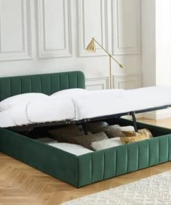 DIVA SALON Lits Lit Avec Sommier 2 Places En Tissu Kaki