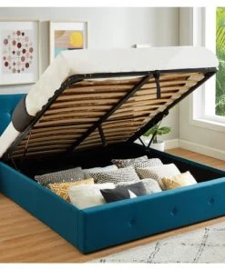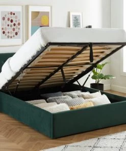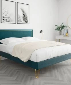DIVA SALON Lits Lit Avec Sommier 2 Places En Tissu Kaki