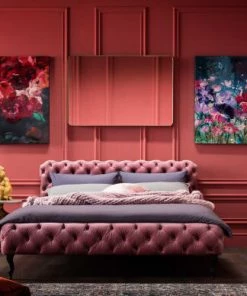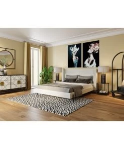 DIVA SALON Lits Lit Avec Sommier 2 Places En Tissu Kaki