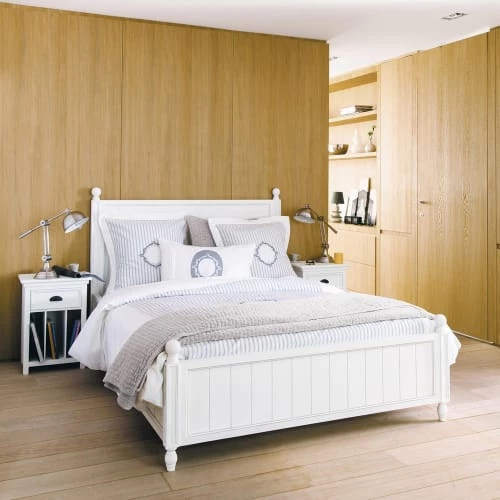 Sobre et classique, ce lit en bois peint créera une ambiance douce et reposante dans votre chambre à coucher.