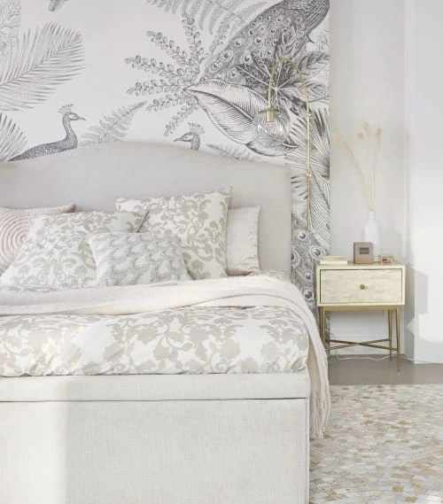 Garnissage tête de lit : mousse polyester, densité 340g/m3