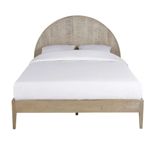 Motifs sculptés à la main sur la tête de litCouchage 160×200 cm