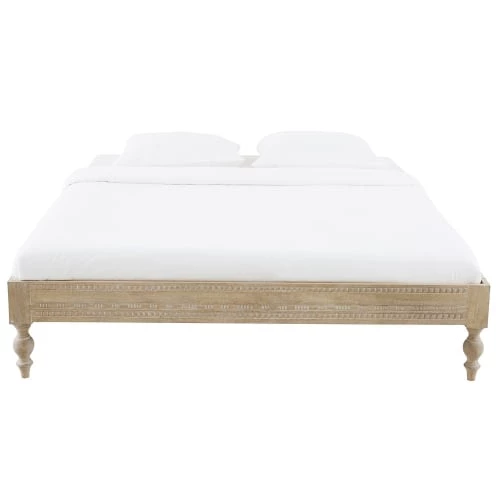 Envie de créer une ambiance gypset dans votre chambre ? Avec le lit 160×200 manguier massif sculpté MEEKO, laissez libre court à vos envies d’exotisme. Conçu en manguier massif blanc et sculpté à la main, il apportera une touche chaleureuse à votre intérieur. Chic et bohème, ce lit vous séduira par sa fabrication artisanale indienne. Dépaysement garanti !