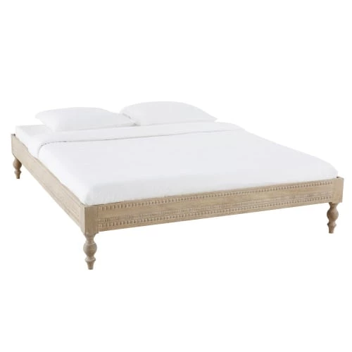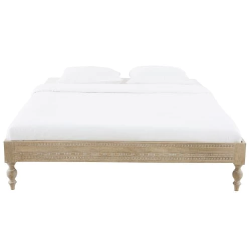 Laissez-vous bercer par le charme ethnique du lit 180×200 en manguier massif sculpté MEEKO ! Monté sur des petits pieds galbés, ce lit 2 places sera la pièce maîtresse de votre chambre à coucher et créera une ambiance zen et apaisante. Sculpté à la main et issu de l’artisanat indien, ce lit unique fera sensation auprès de vos proches. Pour une harmonie propice à la détente, n’hésitez pas à parfaire votre déco avec des accessoires en bois et fibres végétales… Authenticité assurée !