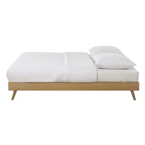 Qui dit mobilier vintage dit forcément pieds obliques ! Le lit avec sommier à lattes 160×200 SIXTIES ne déroge pas à la règle avec son allure minimaliste et rétro. Recouvert d’un placage chêne intemporel, ce lit vintage 2 places fera l’unanimité grâce à son piétement scandinave ultra design. Optez pour un soutien de qualité avec ce lit 160×200 doté d’un sommier à lattes en pin inclus. Il ne vous restera plus qu’à y installer un matelas adapté !