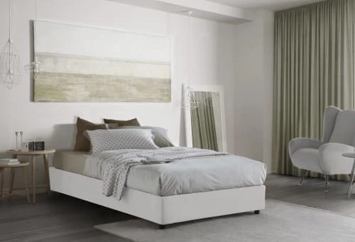 Talamo Italia Lits Lit Coffre Cm 120×190 En Tissu Blanc