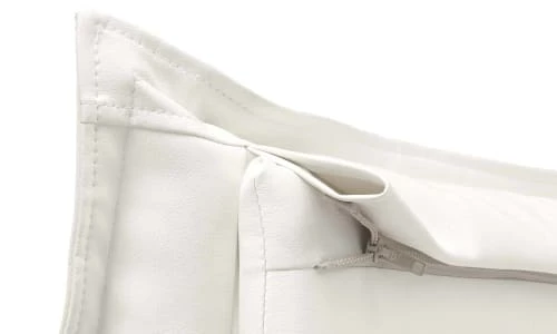 VERONICA FRENCH DOUBLE BED – Lit double français au design moderne Veronica avec tête de lit et conteneur recouvert de cuir écologique rembourré blanc, avec matelas à mémoire de cm 140×190 inclus. STRUCTURE – La structure du lit est en fibre de bois surélevée du sol avec des pieds en ABS et est recouverte en éco-cuir lavable avec un chiffon humide – La tête de lit linéaire assortie en éco-cuir avec surpiqûres apparentes est solide et résistante – Le sommier à lattes en bois multicouche est inclus dans la structure – Mécanisme d’ouverture en fer – L’ajout de la boîte de rangement pratique et peu encombrante permet de transformer le lit en un coffre spacieux pour les draps, les oreillers et les couettes. MATELAS INCLUS – Matelas orthopédique déhoussable, anatomique, climatisée avec double portance 140×190 hauteur 21 cm – Structure en mousse polyuréthane solide h 17 cm, densité 30EP recouverte d’une mousse viscoélastique en Memory Foam h 2 cm, densité 55EP losange en partie haute – Housse en tissu stretch de gr 130 , amovible et lavable en machine à 60° – Rembourrage 100% fibre polytechno, hypoallergénique et anti-acarien des deux côtés – Equipé d’une bande tri space respirante avec zip et poignée en tissu. 100% MADE IN ITALY – La production 100% italienne garantit fiabilité et résistance – L’attention portée aux processus de production, le choix de matières premières de qualité et le souci du détail rendent ce lit solide, confortable et résistant dans le temps. MESURES ET OUVERTURE – Dimensions du lit : Longueur 205 x Largeur 155 x Hauteur 95 cm (hauteur nette depuis le sol :.