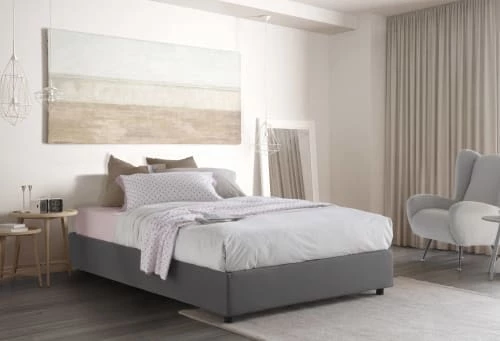 Talamo Italia Lits Lit Coffre Cm 140×190 En Tissu Gris