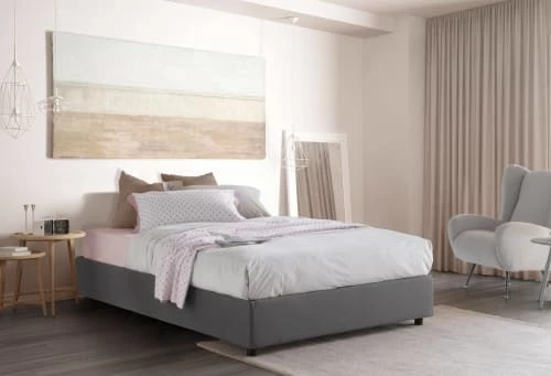 Talamo Italia Lits Lit Coffre Cm 140×200 En Tissu Gris