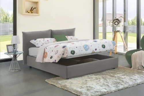 Talamo Italia Lits Lit Coffre Cm 160×190 En Tissu Gris