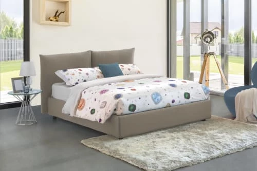 LIT DOUBLE ROSE – Lit double au design rose moderne avec tête de lit et bac recouvert de tissu capitonné amovible gris tourterelle, adapté pour un matelas cm 160×190. STRUCTURE – La structure du lit est en fibre de bois surélevée du sol avec des pieds en ABS et est recouverte d’un tissu polyester doux, amovible et lavable en machine à 30° – La tête de lit linéaire associée à des coutures apparentes en tissu, est solide et résistante – Le sommier à lattes en contreplaqué est inclus dans la structure – Mécanisme d’ouverture en fer – L’ajout de la boîte de rangement pratique et peu encombrante permet de transformer le lit en un coffre spacieux pour les draps, les oreillers et les couettes. MONTAGE – Le montage est simple et rapide : grâce aux outils de montage fournis dans un kit avec le produit et le livret d’instructions, vous pouvez assembler votre produit en quelques minutes. 100% MADE IN ITALY – La production 100% italienne garantit fiabilité et résistance – L’attention portée aux processus de production, le choix de matières premières de qualité et le souci du détail rendent ce lit solide, confortable et résistant dans le temps. MESURES ET OUVERTURE – Dimensions du lit : Longueur 215 x Largeur 190 x Hauteur 100 cm (hauteur nette depuis le sol : 32cm) – Ouverture du conteneur : avant – Profondeur du conteneur : environ 20 cm – Hauteur des pieds : environ 10 cm – Bas du lit en mélaminé d’une épaisseur de 1 cm – Adapté aux dimensions du matelas : cm 160×190 – Matelas non inclus.