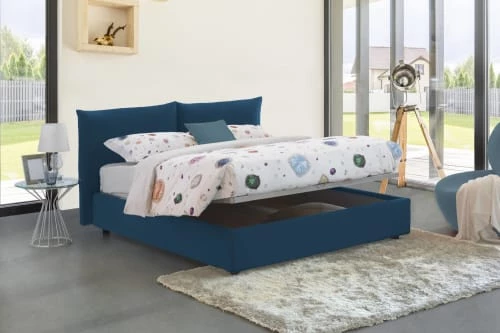 Talamo Italia Lits Lit Coffre Cm 160×200 En Tissu Bleu