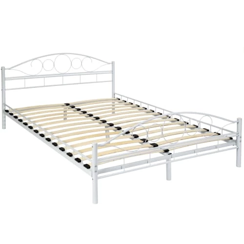Tectake Lits Lit Design Romantique Avec Sommier 200 X 140 Cm Blanc/blanc