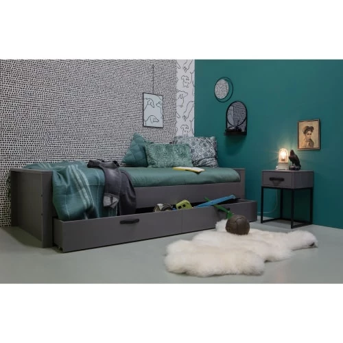 Maisons Du Monde Lits Lit Vintage 160×200 Avec Sommier à Lattes En Velours Bleu Nuit, OEKO-TEX®